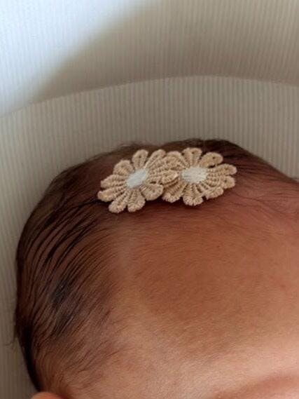 Mijn kleindochter van 6 weken oud die kan ze al in haar haartjes hebben. Ideaal met klipjes! Ze staan zo beeldig!