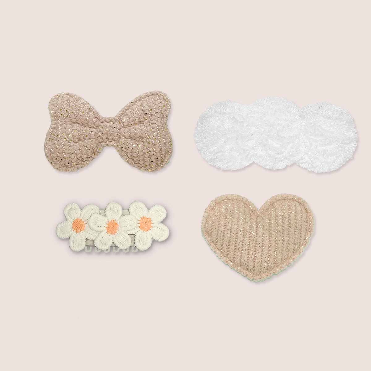 Elegante en zachte haarspeldjes in beige, perfect voor speciale gelegenheden. Ontworpen voor kleintjes met fijn haar, blijven deze speldjes stevig zitten en geven elke feestelijke look een speelse touch.